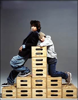 On Max, right: David & Goliath T-shirt, $22 at Yellow
